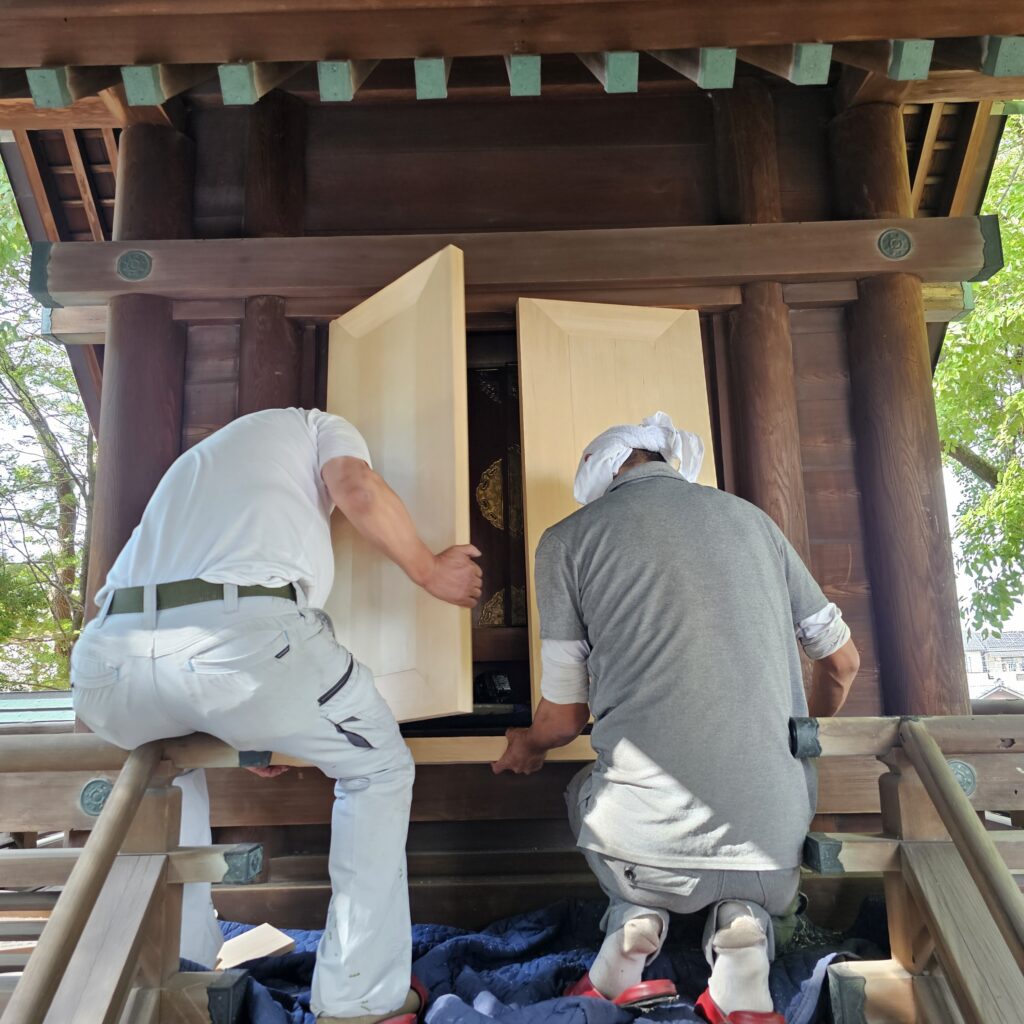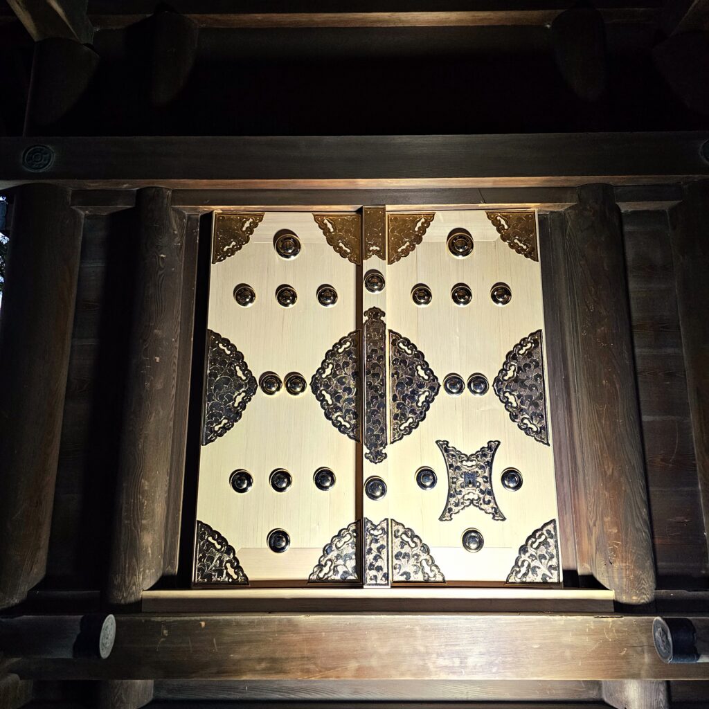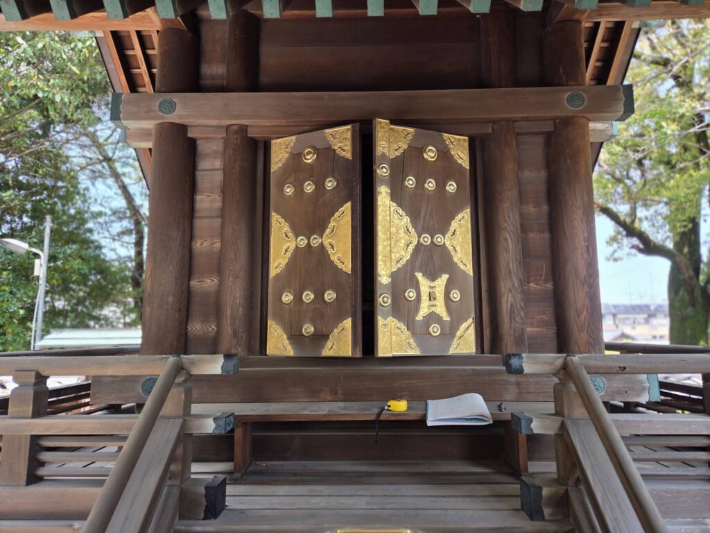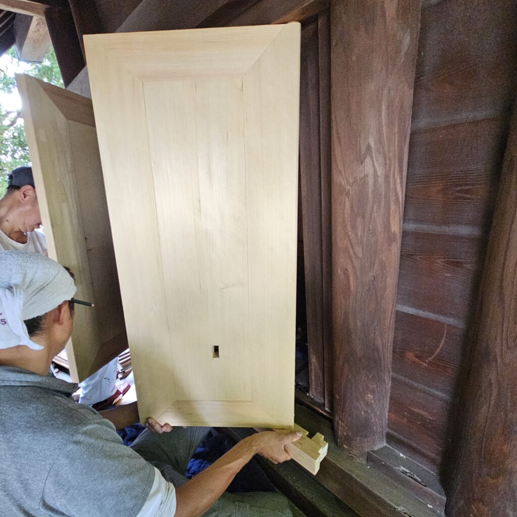 御本殿の御扉が壊れて軸が割れてしまったので新しく取替え工事をしました。
