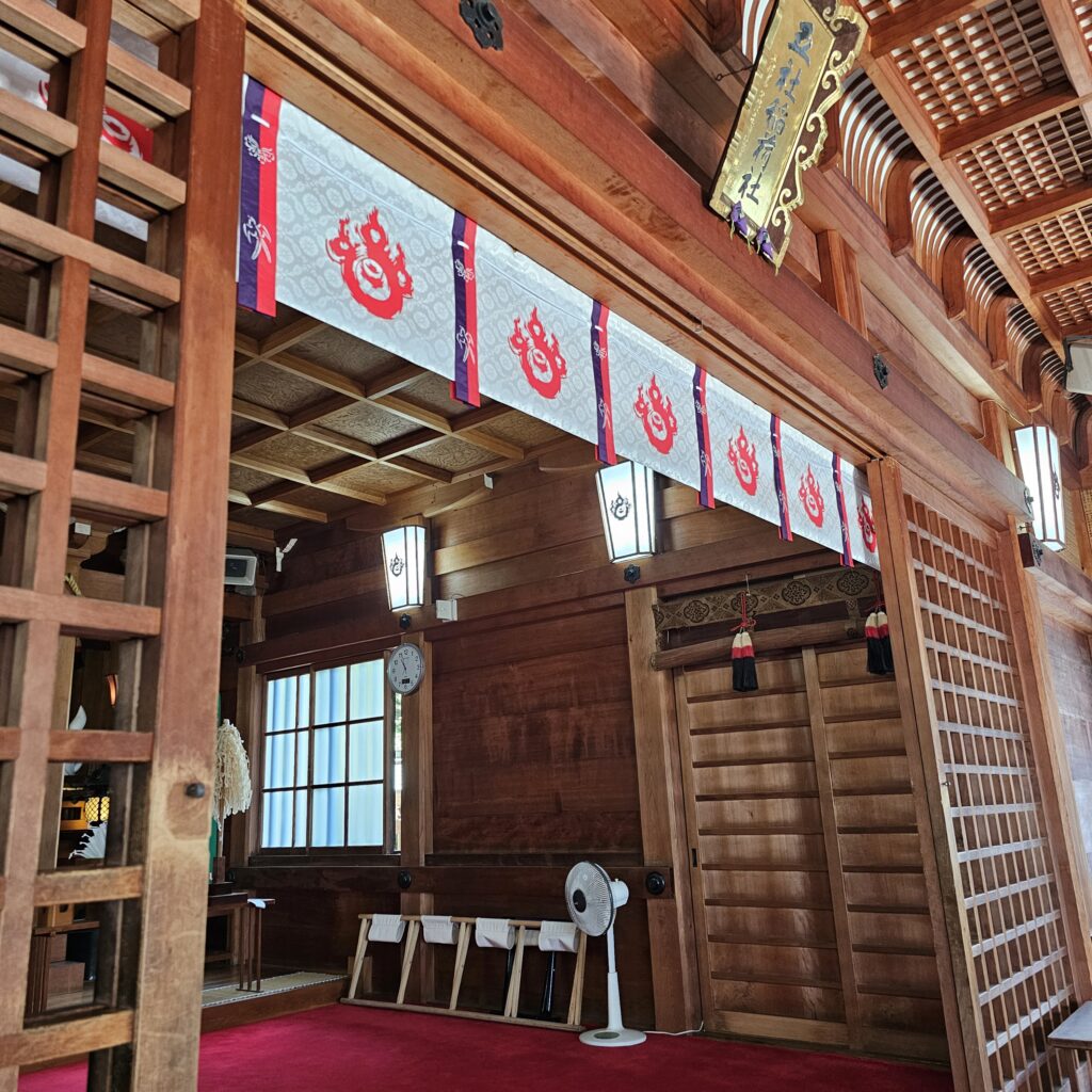稲荷社らしく赤い神紋を摺った門帳を取り付けしました。