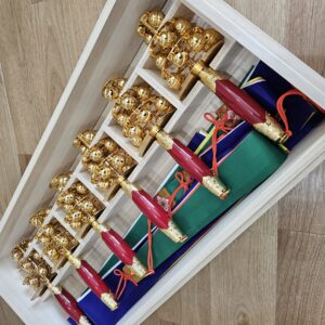 本欅材に唐草彫入れ、本金箔押し仕上げの社名額です。